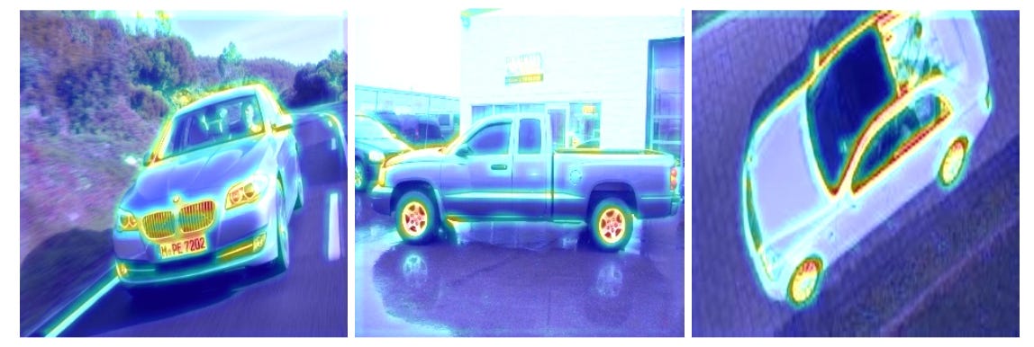 The heatmaps with these cars and trucks are displaying what the “AI” is “seeing” [shudder] to make decisions and classify things, as I understand it. But these heatmaps look nothing like the maps produced in the Scientific Reports paper. Those heatmaps look like pure noise, right?