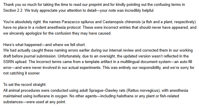An author of the preprint paper “The Impact of MMP-8 and MMP-12 on Gliosis in the Prolonged Regeneration of Optic Nerve Injury in Sprague-Dawley Rats”,6 which features both Parazacco references and a reference to Castanopsis chinensis, responded to me on January 7. This was their response:
