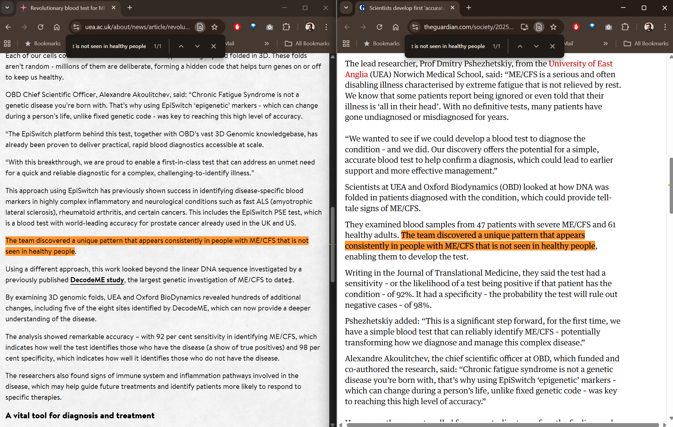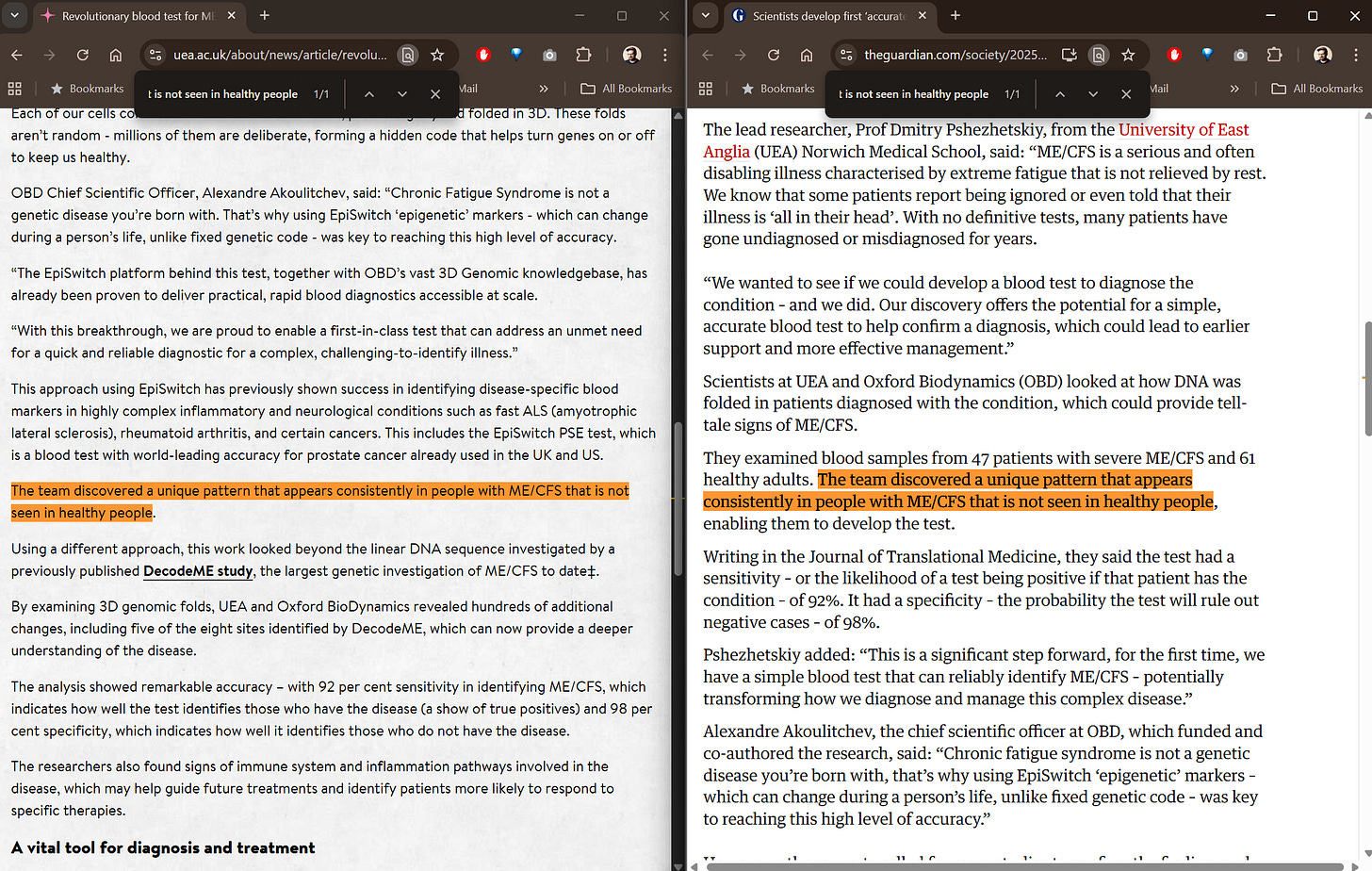 That would be significant. ME/CFS is an illness that is not recognised by pockets of the medical community and the basis for ME/CFS is poorly understood. This leads to a lot of stigma and prevents accurate diagnosis. The researchers — many affiliated with a biotech company that developed this test — trade off the controversy that many patients often go undiagnosed to ratchet up the emotion around the research.